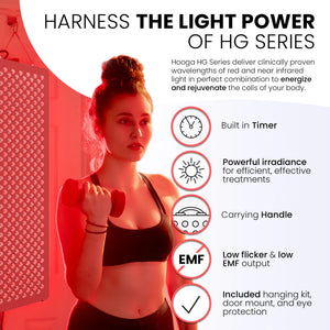 Experience the power of red light therapy from the comfort of your home with the HG1000, a full-body red light therapy device designed to deliver targeted 660nm and 850nm wavelengths for optimal wellness. Whether you're aiming for skin rejuvenation, wound healing, pain relief, or muscle recovery, the HG1000 provides a powerful, effective, and safe solution.